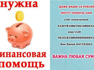 Здравствуйте, прошу финансовой помощи, как говорится с мира по нитке, хочу начать новую стабильную жизнь, трое деток, 2 работы, а очень хочется начать что то свое, а не работать за копейки, которых еле хватает на еду и оплатить жилье...