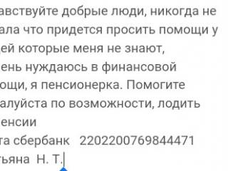 Здравствуйте, спасибо за лайки, никогда ни чего не у кого не просила, но обстоятельства вынуждают.