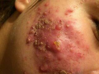 Болезнь началась у меня в 2016 году,на лице появился большой гнойнечек,и начал разрастать,в итоге я обратилась в больницу,там мне его вскрыли,но